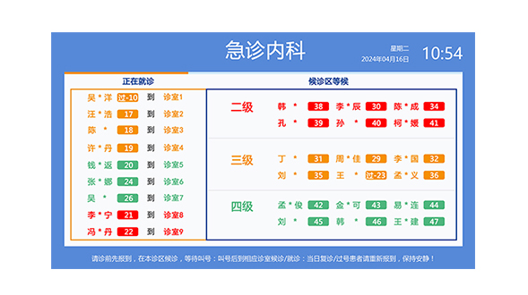 动态显示候诊信息:包括 当前就诊号、等待人数、预计等待时间。